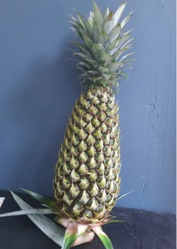 Pineapple (Ananas comosus) is a tropical fruit native to South America, specifically Brazil and Paraguay. It has a distinctive appearance with its rough, spiky outer skin and crown of long, green leaves. The fruit itself is sweet and slightly tart, with a juicy, vibrant yellow flesh that is often eaten fresh, blended into smoothies, or used in savory and sweet dishes.